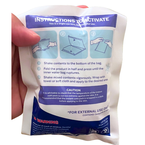 • MUY PRÁCTICO Y PORTÁTIL: La Compresa o Pack de Hielo Instantáneo es súmamente versátil y fue diseñado para activarse de manera muy fácil. Únicamente debe tomar el paquete, doblarlo por la mitad, agitarlo y de manera inmediata obtendrá un hielo con efectos inmediatos. No requiere refrigeración previa