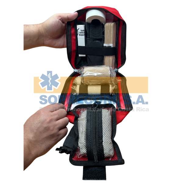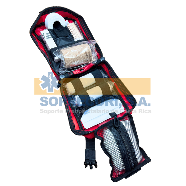 - 1 Botiquín en tela importado, fabricación EEUU, para uso en faja o cinturón, con agarre superior, plegable, con divisiones internas, dimensiones aproximadas: 21 cm alto x 14.9 cm ancho x 10.1 cm fondo |