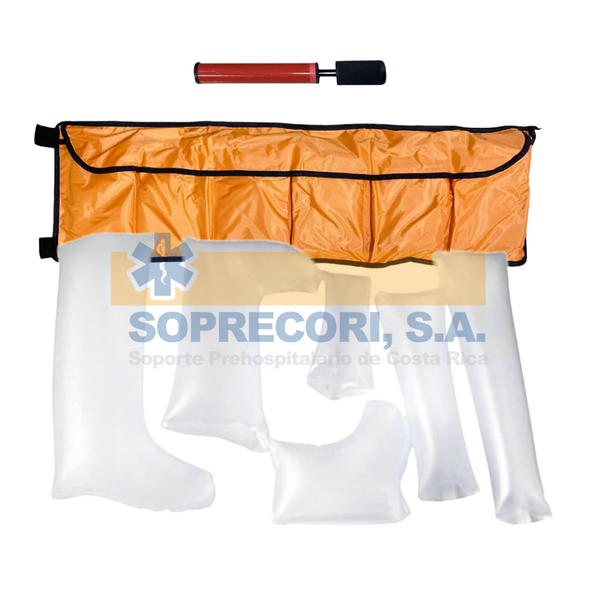 - 6 Férulas inflables para colocación en extremidades superiores, inferiores, así como articulaciones.