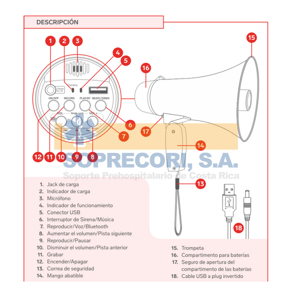 - Batería recargable incluida con capacidad de función hasta de 2 horas en volumen moderado.