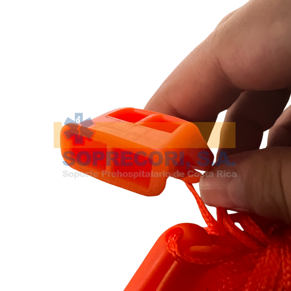 • Llamativo diseño: fabricado especialmente para emergencias, el color anaranjado distingue este equipo de cualquier otro, conocido como silbato marino. Además se incluye un lanyard también anaranjado, el cual permite la fácil ubicación del equipo y su transporte y manipulación durante caminatas, evitando que se pierda.